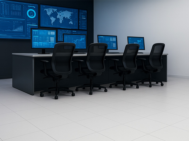 Con productos ergonómicos para la comodidad y la eficiencia de Monitoreo gestión y reacción en cuartos de Vigilancia, Video Walls, cuartos de Crisis y NOC de operadores de Energía y Telecomunicaciones.